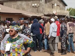 In Kakuri Gwari voting center, unit 006, there are 795 registered voters. Voters were already casting their votes as at 9.30 and there were complaints. from the party agents, voters and INEC officials.
